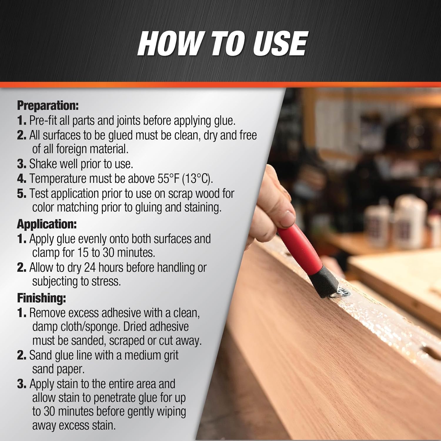 With its fast-setting formula, you can trust this wood glue to securely hold your pieces together without any messy residue. The convenient squeeze bottle design allows for easy application, ensuring precise and clean results.