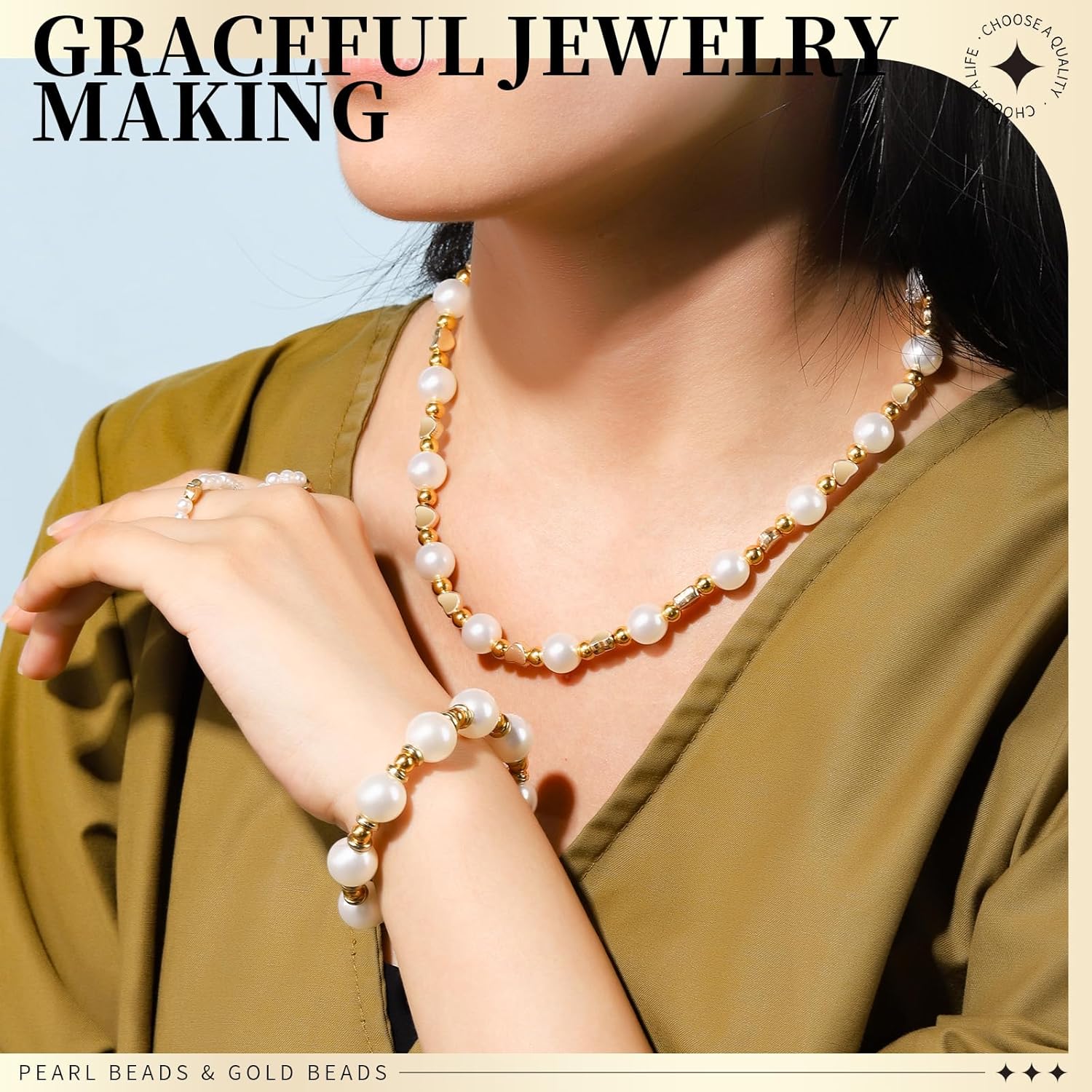LEOBRO Pearl Beads for Bracelets, 720PCS Bracelet Making Kit for Adult, Friendship Bracelet Kits, Bracelet Bead Kits, Small Pearl Beads and Gold Beads Beading Kit for Bracelets, Jewelry Making Kit